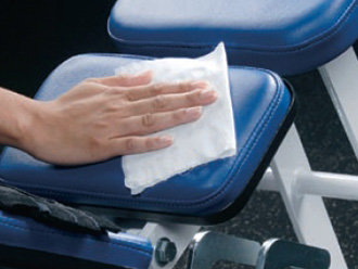 If you exercise at a gym, it should affect the way you interact with other patrons and machines. Because machines are used by a community, it's important that you wipe down machines before and after you use them -- this will help reduce the spread of germs. If you're taking advantage of the gym shower and sauna facilities, always wear shower shoes (flip flops). Gym floors harbor bacteria that could lead to fungal infections. Then, make sure you sanitize your hands as you leave the facilities. If you use your own machines, it's still a good idea to wipe them down with an antibacterial solution every few weeks to keep them clean.